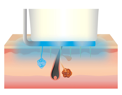 また、カートリッジの先端に付いている、特許技術のクーリングプレートが、治療中の熱から大切な肌の表面を守り、熱傷を抑え、エクリン腺・アポクリン腺を選択的に破壊します。