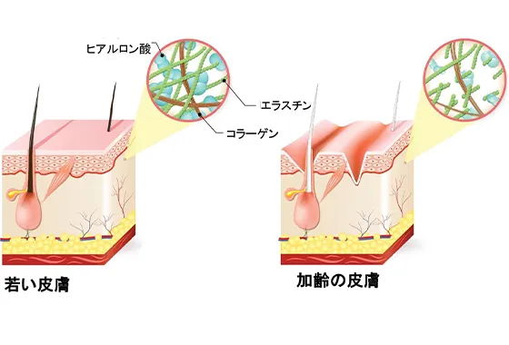 皮膚が老化する原因には、コラーゲン・エラスチン・ヒアルロン酸といった真皮の成分を作り出す、線維芽細胞数が減少していることが影響していると言われています。
