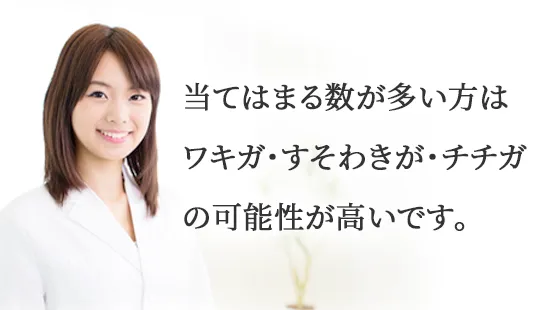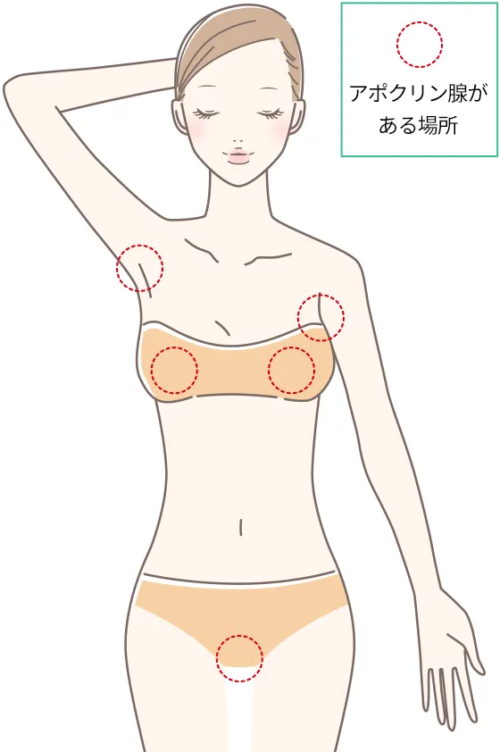 わきがと同じくアポクリン腺から出る白く粘ついた汗がチチガやすそわきがの原因です。