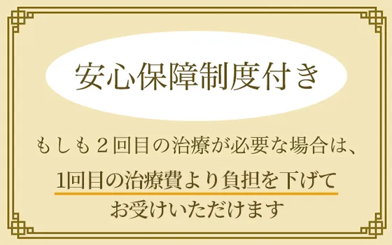ビューホットは効果の高いワキガ・多汗症治療法ですが、万が一2回目の治療が必要な場合、保証制度をご用意しています。