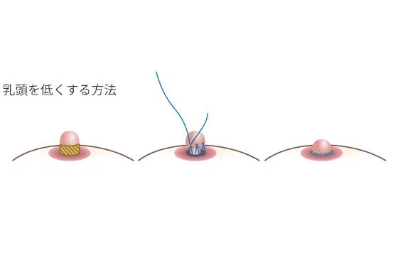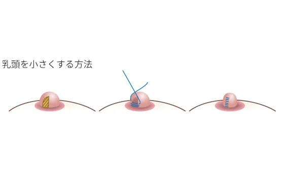 乳頭の内側の目立ちにくい部分の余分な皮膚を取り除き、小さく形を整えます。