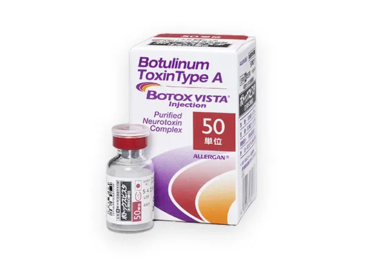 当院では、この不純物が少なく安全で、優れた効果が認められているアラガンジャパン社製のボトックスビスタ®のみを使用しております。