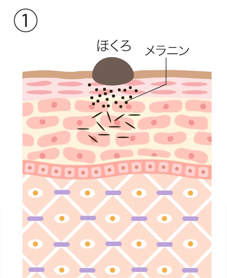 エルビウムヤグレーザーによる、ほくろ・イボ除去は痛みが少ないため、麻酔なしで治療が可能です。また、照射する周辺組織へのダメージも少ないので治癒期間が短いのも特徴です。