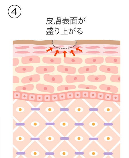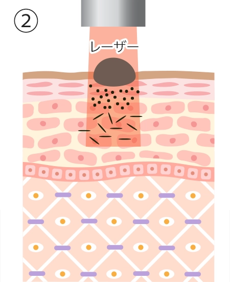 一般のレーザー照射は、周辺組織を熱で凝固させてしまうため、しばらくの間は傷跡として残り、元の綺麗が肌が再生されるまである程度の時間を要します。