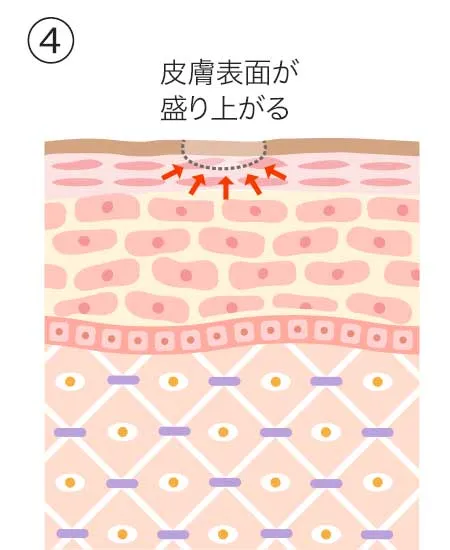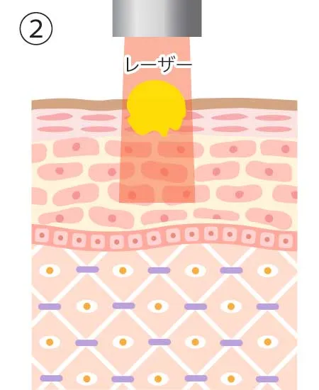 一般的なレーザーは、周りの組織に熱を加えて凝固させるため、傷跡が残り、元のきれいな肌に回復するまで時間がかかります。エルビウムYAGレーザーは、照射時にできる凝固層が少ないため、傷跡の治りが早く、きれいな仕上がりになります。