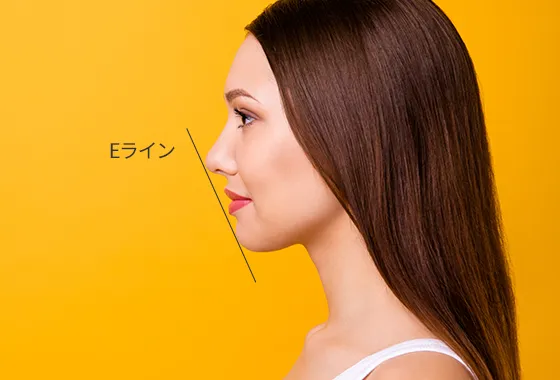 理想的な横顔と言われる「Eライン」は鼻とあごを結んだ直線の上に唇が存在している状態のことをいいます。そして「横顔の黄金比」とは横顔の角度で美しさ評価した比率のことをいい、我々アジア人では少し欧米人と違いがありますが、鼻とアゴを結ぶEラインの中に唇が入り、各部分が黄金比になっているのが理想とされています。