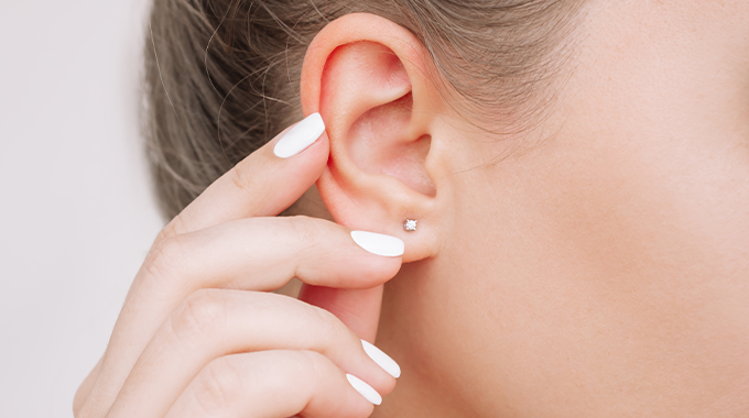 最近では、ピアスホール用器具(ピアッサー)が市販されており、どなたでも簡単にピアスの穴あけが行えるようになりました。しかし、自分でピアスをあけると、ピアッシングの方向がずれ、斜めにホールがあいてしまったり、穴あけ前後のケアを怠ったために炎症を起こしてしまうなど、トラブルを起こす原因となります。