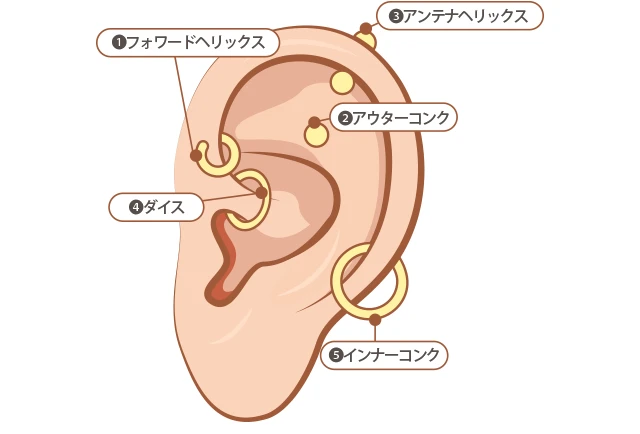 *当院では、耳たぶだけでなく、体の場所でもピアッシングいたします。