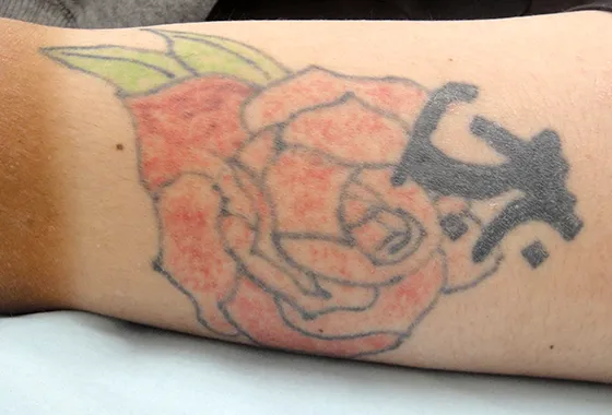 ワンタイムレーザーとは、エルビウムヤグレーザーとピコレーザーを組み合わせたコンビネーション治療です。手の指にある小さなタトゥーや足首や肩、胸や背中にポイントで入っているタトゥーや刺青を今までのレーザー治療で消すには1年以上かかる場合があります。しかし、当院のワンタイムレーザーなら、1回の治療でタトゥーを除去することが可能です。切除法で対応できないようなタトゥーも対応しています。
